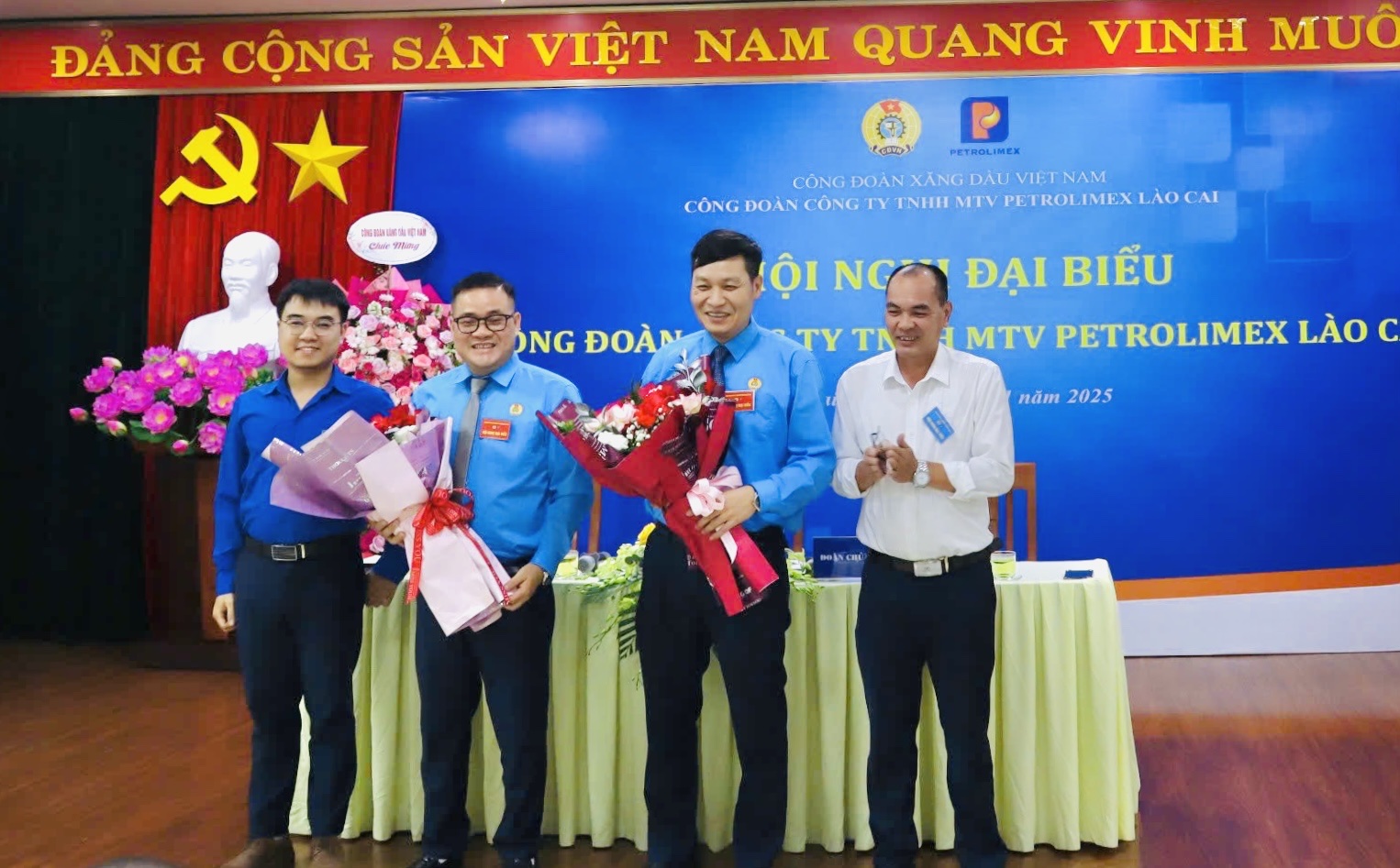 Hội nghị đại biểu Công đoàn Công ty TNHH MTV Petrolimex Lào Cai nhiệm kỳ 2025 – 2030 đã diễn ra thành công tốt đẹp. Thành công của Hội nghị là nguồn cổ vũ to lớn, tiếp thêm động lực để cán bộ, đoàn viên, người lao động toàn Công ty phát huy truyền thống “Đoàn kết – Dân chủ – Đổi mới – Phát triển”, nỗ lực hoàn thành tốt nhiệm vụ sản xuất kinh doanh, xây dựng tổ chức Công đoàn vững mạnh, góp phần vào sự phát triển bền vững của Petrolimex Lào Cai và Tập đoàn Xăng dầu Việt Nam.